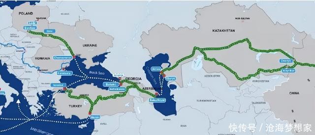 先说“里海路线”这并不是日本突发奇想的新东西,这条航线反而是“一带一路”的一部分,没想到吧。 这条通道起点是新疆喀什或霍尔果斯,然后通过铁路到哈萨克斯坦的阿克套,从这里换渡轮跨越3500公里的里海,然后到高加索,从阿塞拜疆巴库或格鲁吉亚第比利斯,然后换铁路到达土耳其,然后再到欧洲。