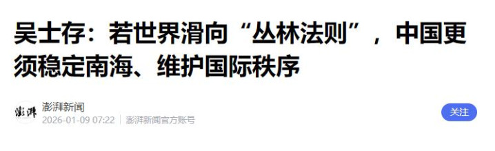 《吴士存:若世界滑向“丛林法则”,中国更须稳定南海、维护国际秩序》;澎湃新闻